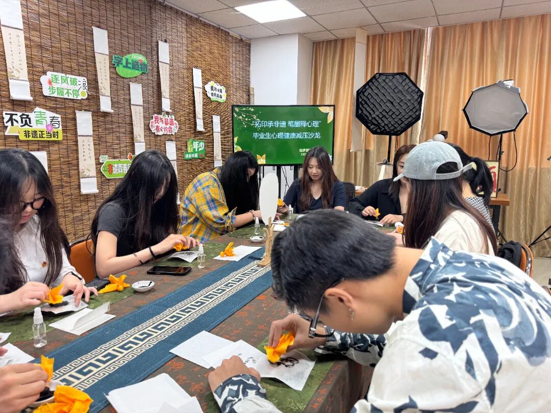 学院开展“拓印承非遗 笔墨释心理”毕业生减压沙龙,活动以非遗技艺为纽带,将国家级非物质文化遗产——拓印技艺、书法艺术与心理疗愈深度融合,为毕业生带来了一场别开生面的“文化传承+心理赋能”体验。“旧物流转铭青春,同窗情谊启新程”主题活动,通过闲置物品流转、公益捐赠等,为毕业生搭建绿色离校平台,传递节约理念,弘扬校园温情。